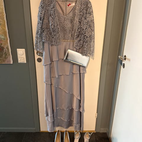 Nydelig, klassisk selskapskjole fra Carla Ruiz - separat blondejakke