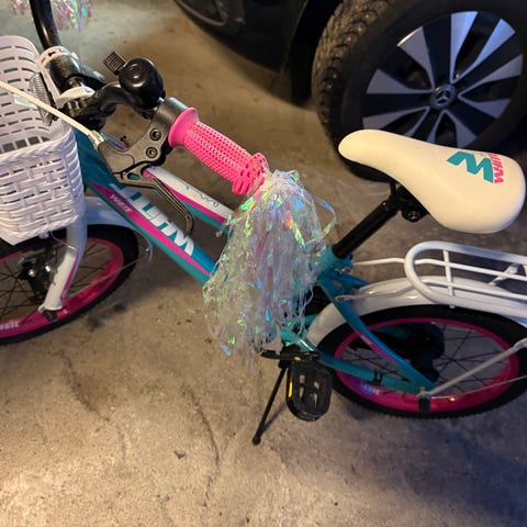 Så godt som ny10 tommers hjul..Grei lær å sykle sykkel til 3-4 åring
