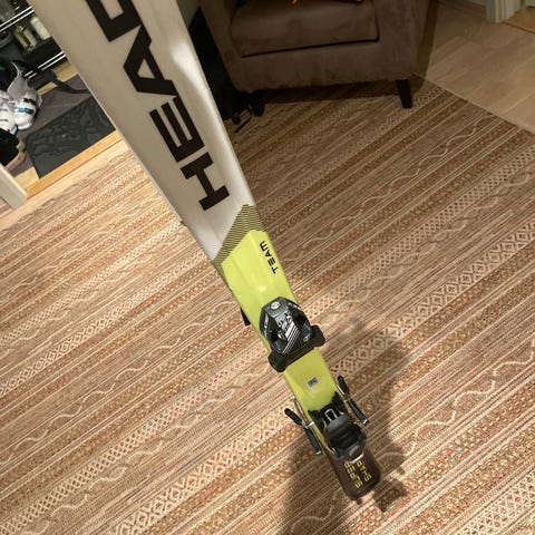 Head SuperShape Team R alpinski med lengde 117 cm. Skiene har en kombinasjon av farger inkludert hvit, svart og rød. Egnet for bruk på preparerte løyper og alpint skiløp.