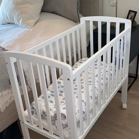 Selger pent brukt hvit Babydan By-my-side seng m/hjul.