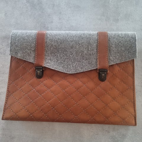 PC veske i sort kunst skinn. Stort hovedrom, og sidelomme, begge med glidelås. Godt polstret. Levers med reim (som aldri er benyttet). Størrelse 38 cm x 27 cm x 3 cm. Pent bruk, vesken har ligget sekken. Kjøpt i 2024 hos Power.