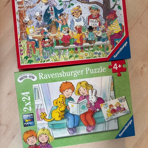 Puslespill for barn i alderen 3-6 år. Inneholder flere forskjellige motiver, blant annet Peppa Gris og andre barnevennlige figurer. Puslespillene varierer i størrelse og antall brikker, egnet for små barn.