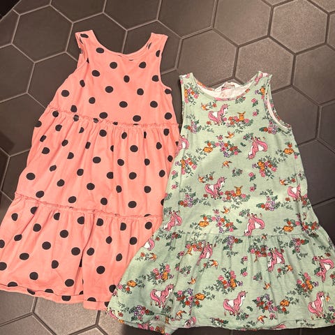 Tre kjoler, tre buksedresser, to tshirts , en strandkjole og en shorts. Selges samlet eller hver for seg.