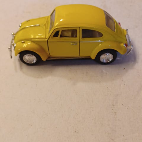Wiking VW Boble i gul farge. Modellen har detaljer som åpne dører