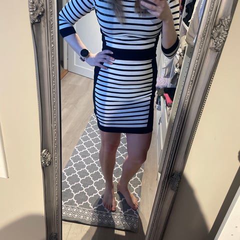 Selger en kjempefin stripete midikjole fra H&M i størrelse S. Kjolen er i ribbestrikket kvalitet som gjør at den sitter fint på kroppen og er veldig behagelig å ha på.