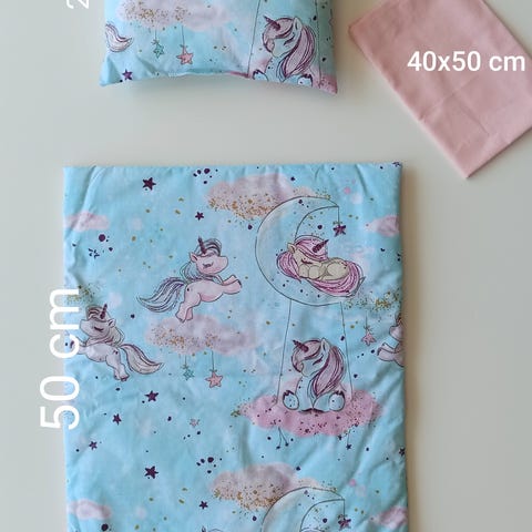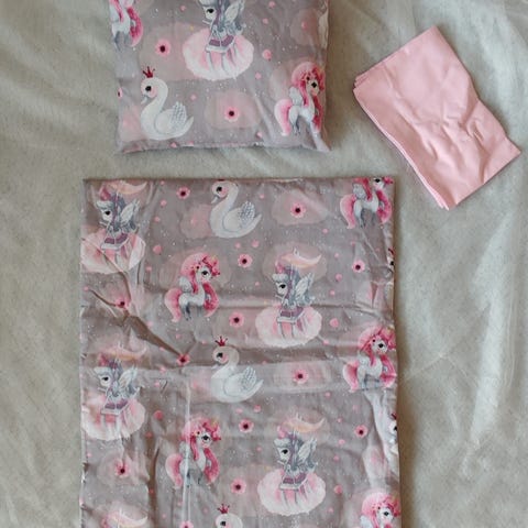 Håndlaget sengesett i lin for dukker 1:12. Passer til Maileg-mus.