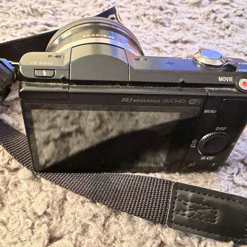 Canon EOS 7D Digital speilreflekskamera. Kameraet leveres med tilbehør som blits, kameraveske og bruksanvisning. Egnet for fotografering med høy bildekvalitet og manuelle innstillinger.