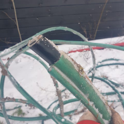 Boks (påbegynt) med kabel. Mer enn halvfull, så minst 50m