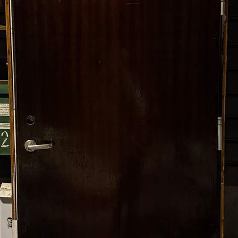 Døren er venstre hengslet sett utenfra