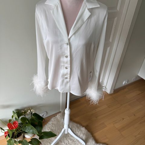 Selger et par ubrukte Nadine Merabi Margot trousers. Størrelse S/M. Passer en 36-38. Glidelås i siden og strutsefjær nederst. Buksen er ment å stoppe på leggen. Kjøpt i forbindelse med bryllupet mitt, men valgte og ikke bruke de. Sender.