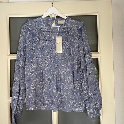 Jeg selger en fin bluse i 100% bomull fra Neo Noir. Størrelsen er 40 og fargen er marineblå. Den har ikke vært brukt og selges med lappene på. Selges da den ikke passer i str til meg.