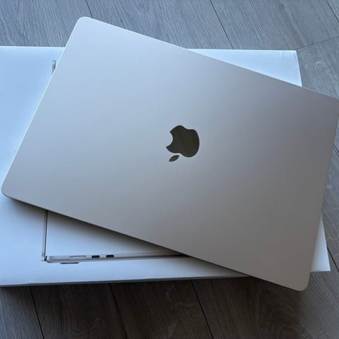 Selger en tom eske til MacBook Air M1. Dokumentasjon følger med som vist på bildet.