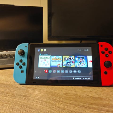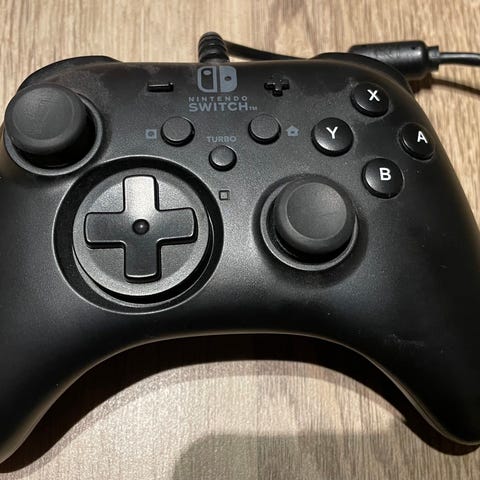 Nintendo Pro Controller spillkontroller i svart farge. Kontrolleren har en ledning for tilkobling og lading, men kan også brukes trådløst. Egnet for bruk med Nintendo spillkonsoller, kompatibel med Switch 1, Lite, Oled og Switch 2.