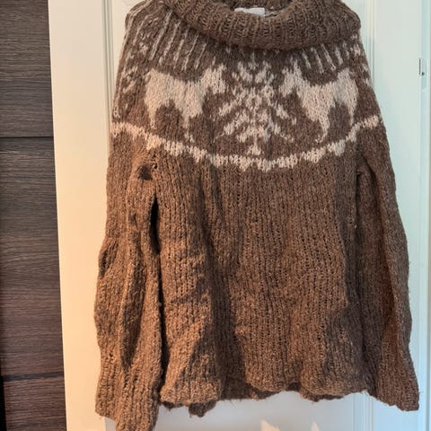 Selger verdens fineste genser fra Skappel da den ikke passer lenger. Utrolig myk og god på, kul løs passform. Har noen nupper men ellers i fin stand. Nypris for bare garn var 1300kr og har brukt mange timer på å strikke.
