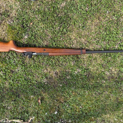 Våpnet ser helt og fint ut, og virker til å være i god stand. Det følger med ekstra stokk og reim. Send gjerne melding ved interesse eller spørsmål.