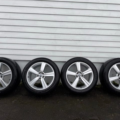 Selger et sett originale Audi 20" Lamina-felger, originalt levert til Audi e-tron, med Pirelli Ice Zero FR piggfrie vinterdekk.