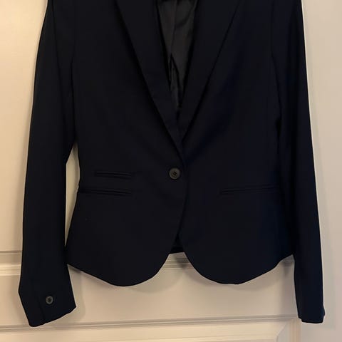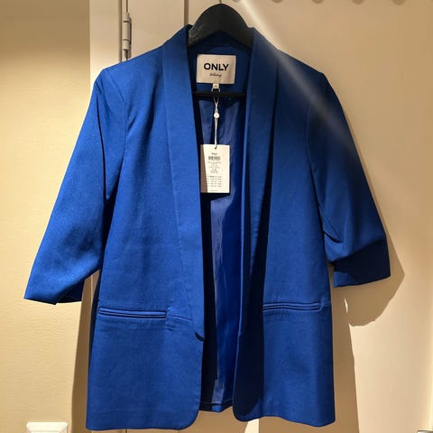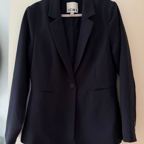 Ichi blazer i blå farge, laget av 100% polyester både i ytterstoff og fôr. Hel og fin!
