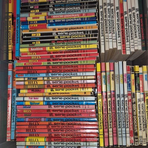Pocket bøker og mange blader