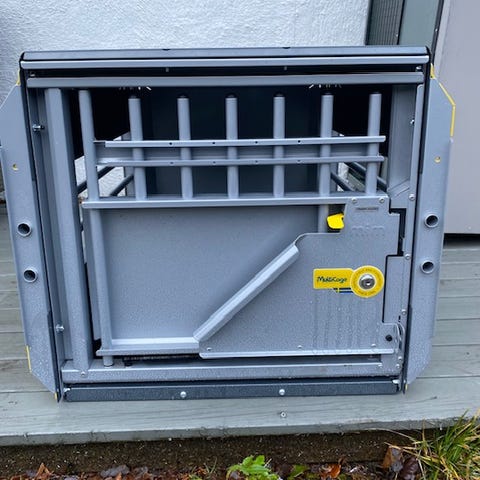 Pent brukt hundebur stått i Skoda Enyaq. Selges pga bytte av bil. Solid bur hvor medium størrelse hund kan både sitte oppreist og ligge avslappet. Kjøpt nytt på Felleskjøpet 2020.
