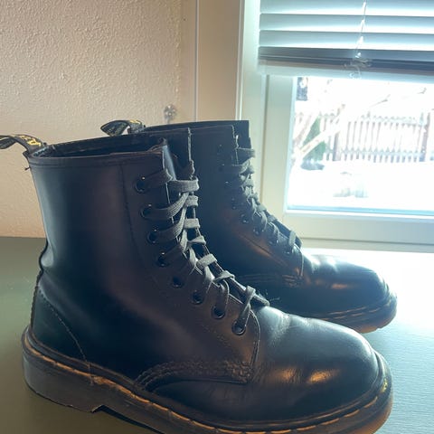 Dr. Martens platform. Pent brukt. Lite hakk i skinnet bakerst på høyre sko. Ser dette på bildet.
