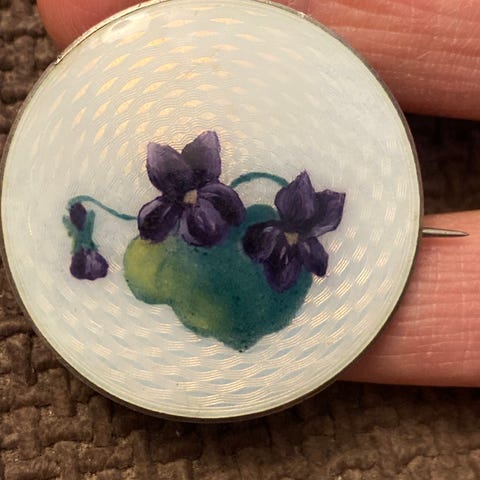 Sølv og emaljenål i rosa farge. Prikkfri brosje. Vintage.