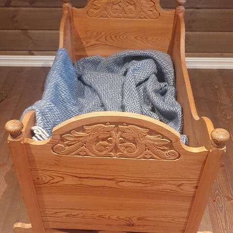 Vugge tilsalgs kr.200. Aldri brukt, har bare blitt stående. Madrassmål 40x70