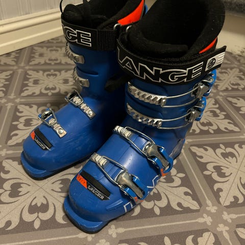 Lange LZ 60 alpinstøvel i blå farge med størrelse 21,5 cm. Støvelen har tre spenner for justering og en solid såle. Egnet for barn str 33-34