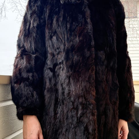 Meget vakker og velholdt mørk brun mink pelsjakke selges. Den er oppbevart tørt og mørkt. Den er lite brukt og kjøpt på 90-tallet. Den passer str M og L