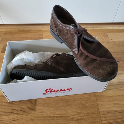 Litt slitasje bakpå helene. Selges ettersom de ikke blir brukt.