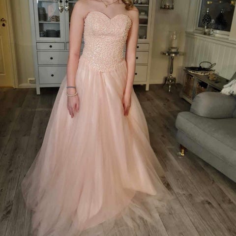Selger ballkjolen min som har blitt brukt en gang. Strl S men passer også XS da den kan snøres godt inn. Underskjørt kommer med