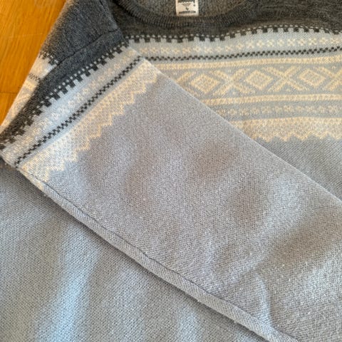 Utrolig flott Marius ullgenser selges for 400,-.