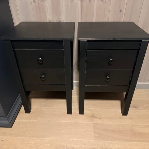 Vikhammer nattbord kjøpt nye av meg i 2018 selges da vi har gått over til vegghengte. Pent brukt, liten malingsflekk borte på ene hjørnet på ett av de.