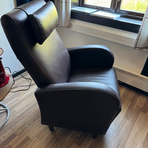 en stol i god stand, skinn, veldig god kvalitet, laget på bestilling