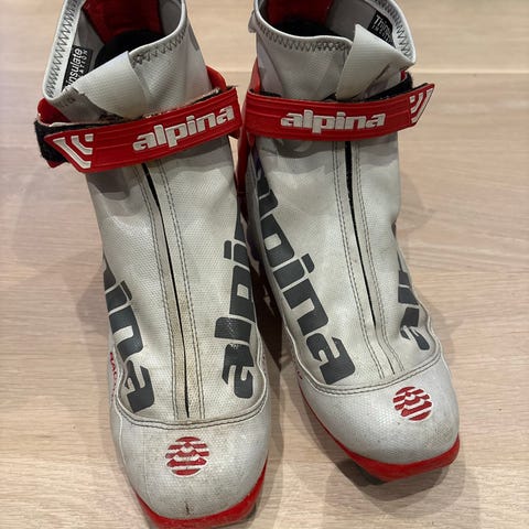 Alpina Elite Jr. 2.0 kombi skisko str.38. Sko for både klassisk og skøyting. Skoene har glidelås foran og snøring, samt justerbar spenne for god passform og stabilitet. De er godt brukt. Noen rifter i yttermaterialet, noen som har blitt fikset litt på, har ingen betydning for bruk.