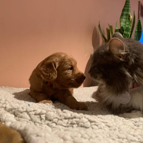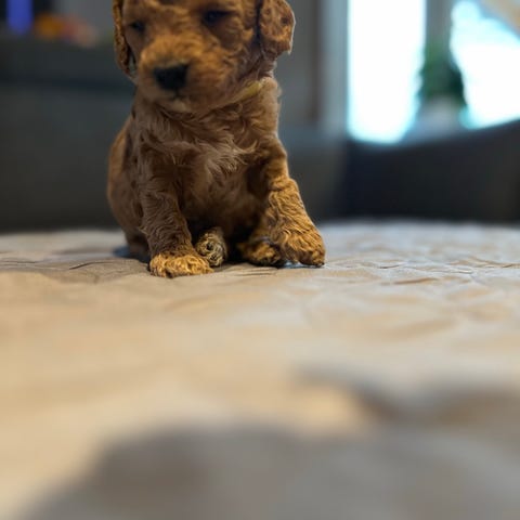Mor 50%stor puddel, 25% labrador og 25% golden retriever