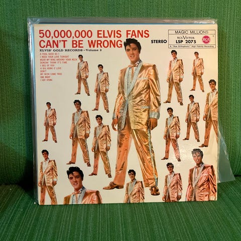 Elvis Presley singelplate med låtene Blue Suede Shoes, Tutti Frutti, I Got a Woman og Just Because. Plateformat: singel.