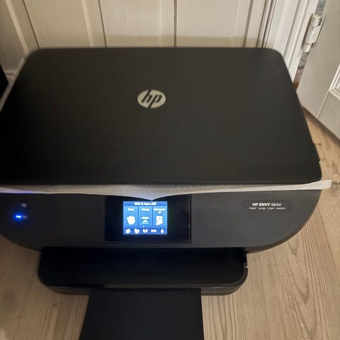 HP ENVY 5644 multifunksjonsskriver med fargeutskrift, skanning, foto og kopiering. Kompakt design i svart farge.