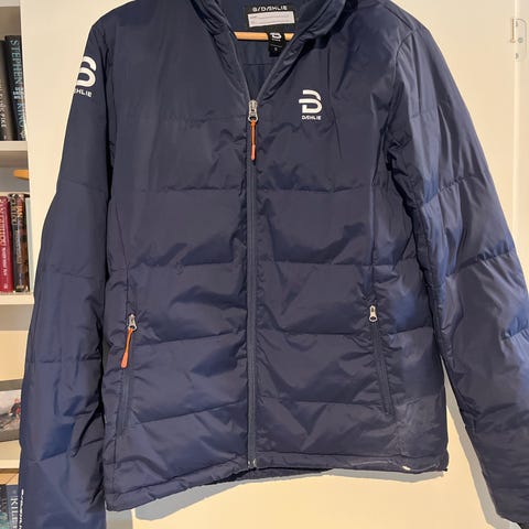 Bjørn Dæhlie vinterjakke i størrelse Medium, svart farge, fylt med dun. Jakken har hette og flere lommer samt justeringsmuligheter nederst på jakken, se bilder.