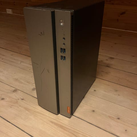 HP Pavilion a6180.no Desktop-PC med svart og sølvfarget kabinett. Inkluderer tastatur og fjernkontroll. Utstyrt med flere USB-porter, lydutgang og optisk stasjon. Strømtilkobling på 230 V. Det følger også med en 160G media drive disk som ses på bilder.