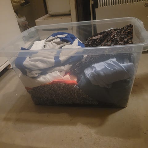 Klespakke med sommerklær, kjoler, skjørt, shirts, topper, deninjakke, bikiner. Passer str L.