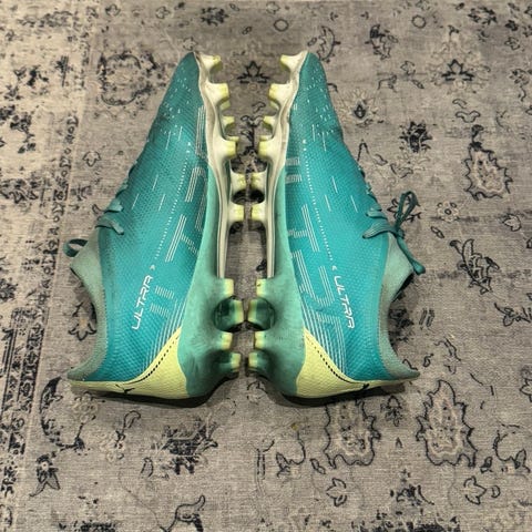 Adidas Predator fotballsko i blå og oransje farger, størrelse 35. Laget for bruk på kunstgress og gressbaner. Skoene har snøring.