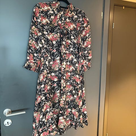 Lite brukt av ett barn, underkjole som festes til gjennomsiktig overkjole med klapper. Florlett og fin kjole, kan brukes med belte for en mer figurnær fit.