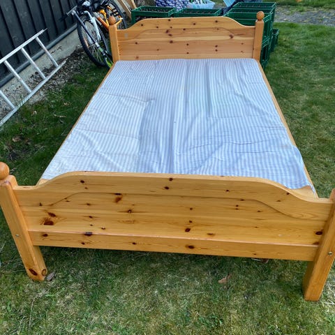 Furu uttrekkbar seng. Madrassmål 75 cm bredde. Lengde 110 - 200 cm. Må hentes.