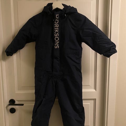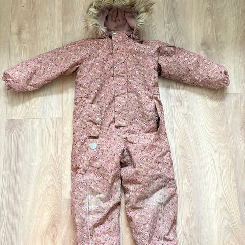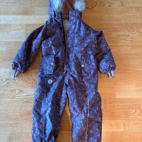 Wheat vinterdress i størrelse 110, blå farge. Dressen har hette med pelskant og er egnet for kaldt vær. Seler inni som gjør at barnet bærer dressen godt. Fleecefôr inni.