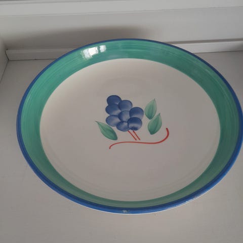 Diameter øverst 32-33 cm, nederst 16 cn. Høyde 17 cm