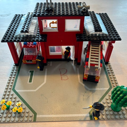 -Mangler stickers til front av stasjon, samt 2 av stickers som skulle vært på innsiden av luken på stigebilen.