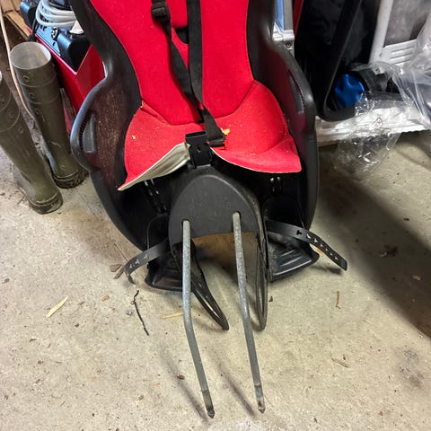Selger Hamax sykkelsete for barn. Modell er ukjent.