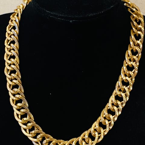 Halskjede med geometrisk mønster i gullfarge halvklave
