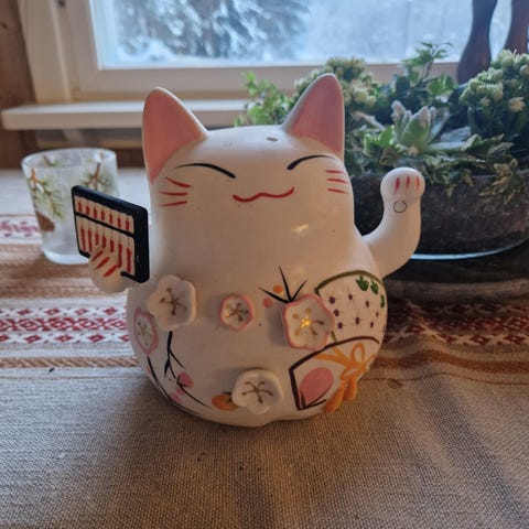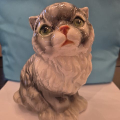 Katt i kurv-sparebøsse fra 50-tallet