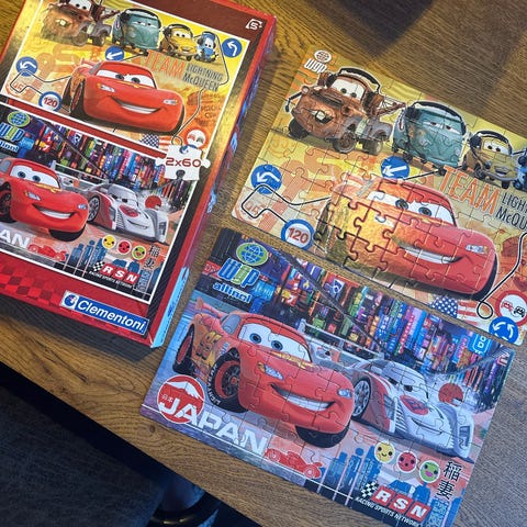 Clementoni Cars 3 puslespill med to sett på 20 brikker hver. Det ene puslespillet mangler et hjørne. Puslespillene har motiver fra filmen Cars 3, inkludert karakterer som Lynet McQueen. Passer for barn som liker biltema og puslespill.